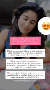 “Increible, estoy en el lanzamiento de mi programa Premium y no puedo creer que gracias al Impulso pude animarme. Se lo recomiendo a quien pase por mi vida y quiera dar ese salto de calidad a sus servicios.”